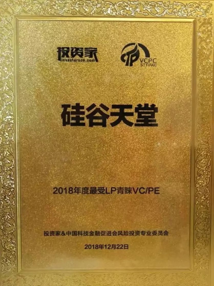 2018年12月21日-22日,由投資家網(wǎng)主辦的“投資家網(wǎng)·2018中國股權投資年度峰會”在北京舉行,并發(fā)布2018中國股權投資年度系列榜單。天堂硅谷控股母公司硅谷天堂榮獲“2018年度最受LP青睞獎”。